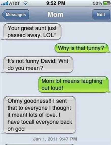 This is the quickest way to lose someones interest. MOST EMBARRASSING TEXTS EVER. This can result in them sending inappropriate texts to their children at times which is extremely embarrassing.